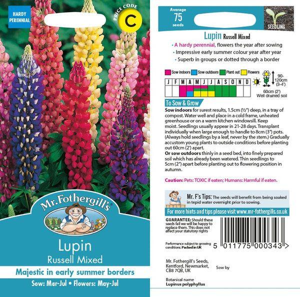 Introducing the Lupin Russell Mixed Seeds, a pack of seeds that can be used to grow a variety of plants. These seeds are known for their ability to produce a high yield of seeds, making them a great choice for those who want to grow a lot of plants.