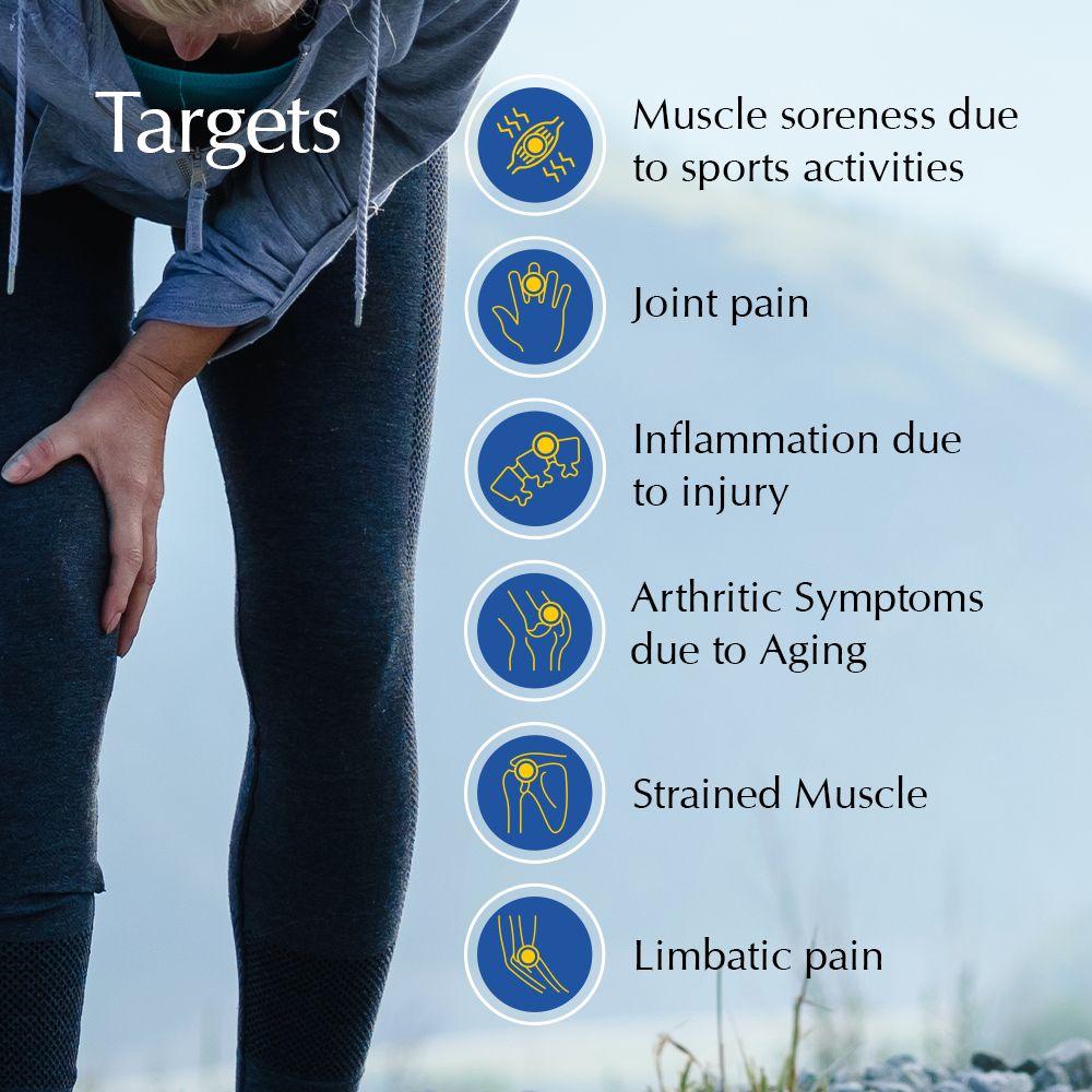 Relieves joint and muscle pain, reduces inflammation, improves flexibility, and promotes relaxation through the soothing effects of natural ingredients.