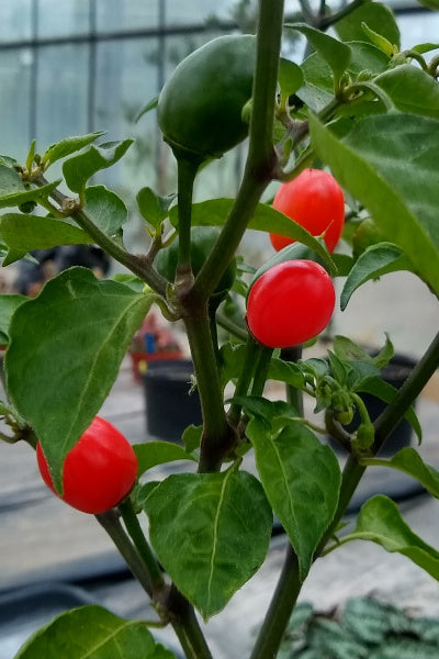Akabare is a chilli from Nepal, it is a small round fruit which is very hot when eaten and can also be used green for making fermented pickled chillies and can be stored for a long time in the correct environment.