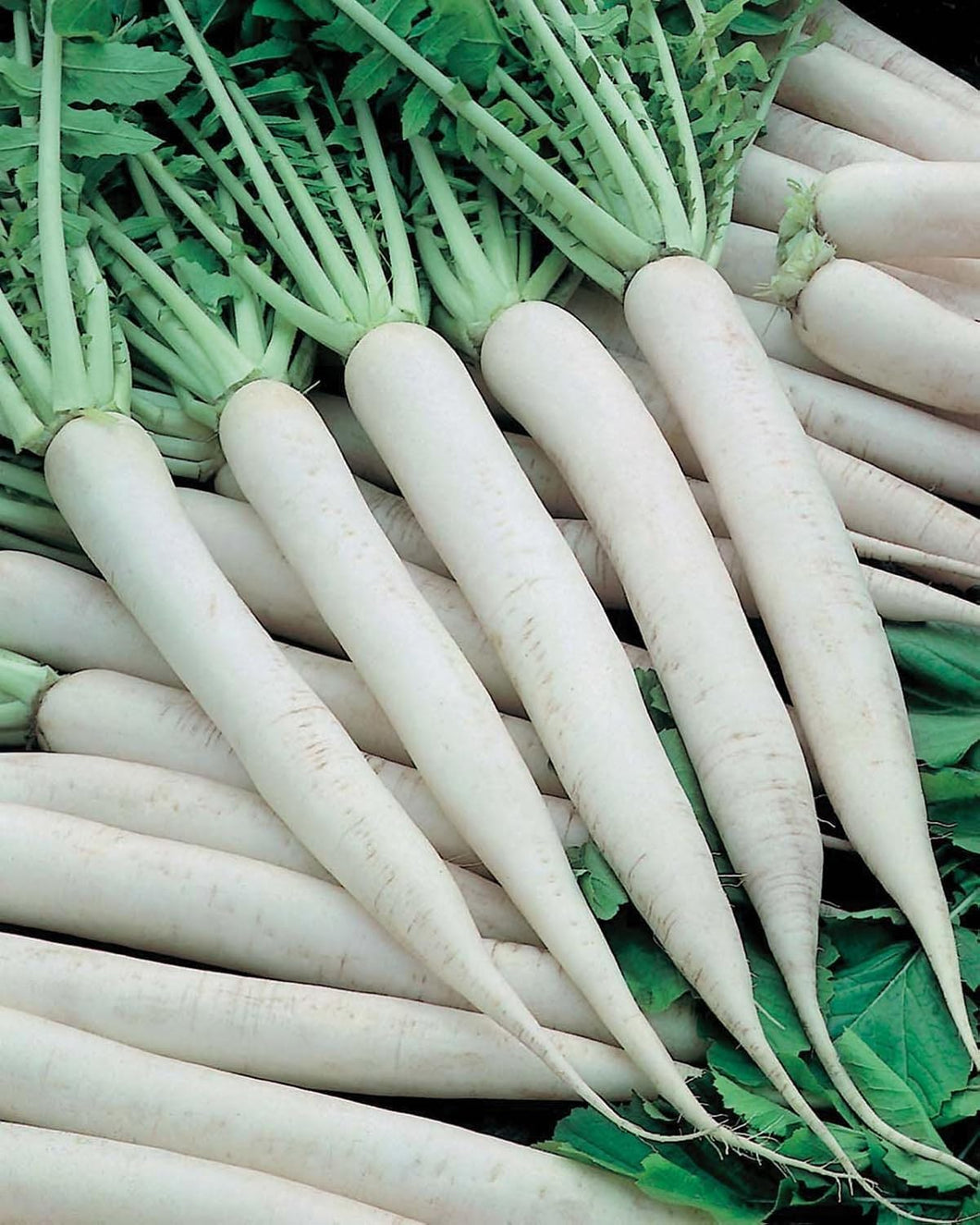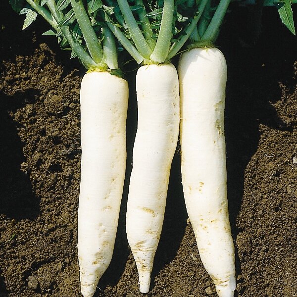 Long White Mooli is a fast-growing radish variety known for its long, smooth white roots and crisp, juicy texture.