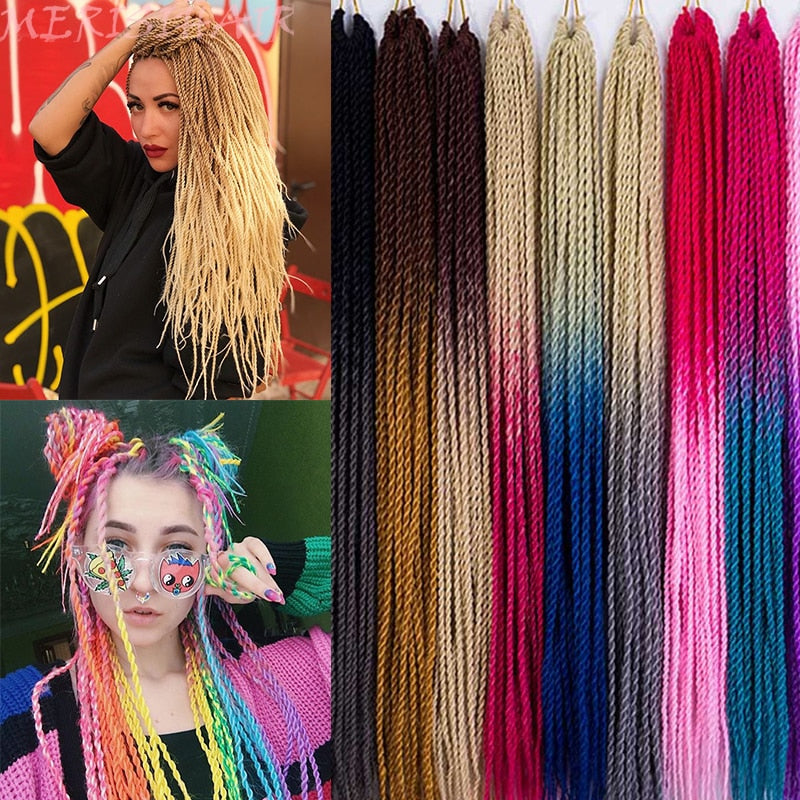 MERISIHAIR Ombre Senegalese Twist Hair Crochet braids 24 inch 30 Roots/pack Synthetic Braiding Hair for Women grey,blue,pink,bro